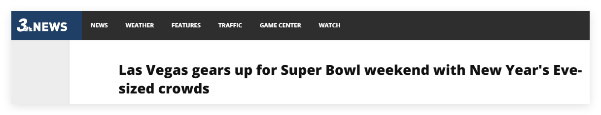 据报道,第60届超级碗将于2月8日晚上举行,这是美洲大陆最盛大、最受关注的体育赛事之一。拉斯维加斯正在为超级碗周末做准备,官员们预计届时粉丝人群堪比跨年夜。