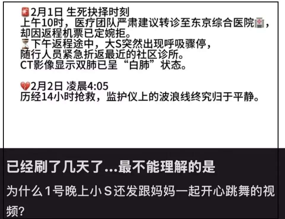 把小S和S妈热舞时间放到大S离世时间轴看,更觉得离谱。