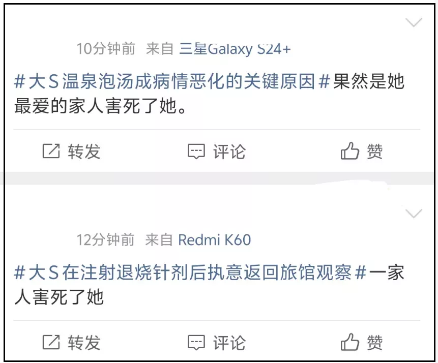 在网友看来,《名人生老病死的秘密》唯一有效信息,就是锤了S家和具俊晔都忽视了大S的病情,特别是妹妹小S,一整个全网翻车,还被质疑推卸责任甩锅大S。