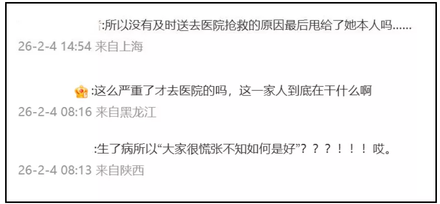 台媒报道了韩国综艺内容,强调大S带病去日本、心脏不舒服泡温泉、拒绝转诊大医院等细节,评论区立马察觉出不对劲,不止一位网友指出关键,难道都是大S自己的问题吗?明知大S生病了,还要组织全家人去日本旅游的人是谁,为什么没人敢提?