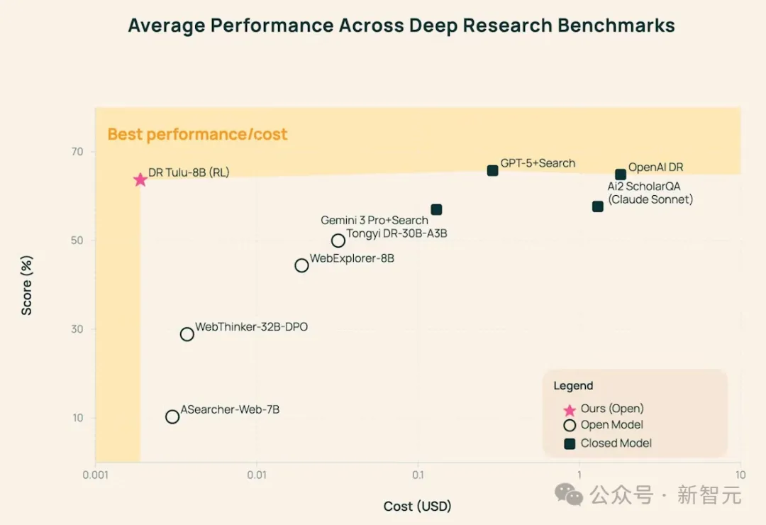 在最新的测试中,DR Tulu-8B 的表现已经足以比肩甚至超越当时的旗舰专有模型,且代码和权重完全开源。
