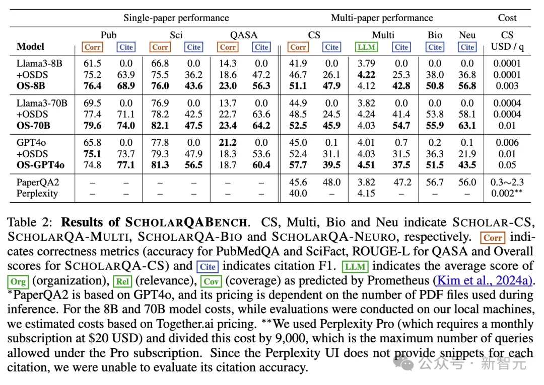 结果是降维打击式的。在涵盖计算机科学、物理学等领域的 ScholarQABench 基准测试中,OpenScholar-8B 的正确率不仅超越了当时的旗舰模型,更将推理成本降低了两个数量级(约 0.003 美元/次)。