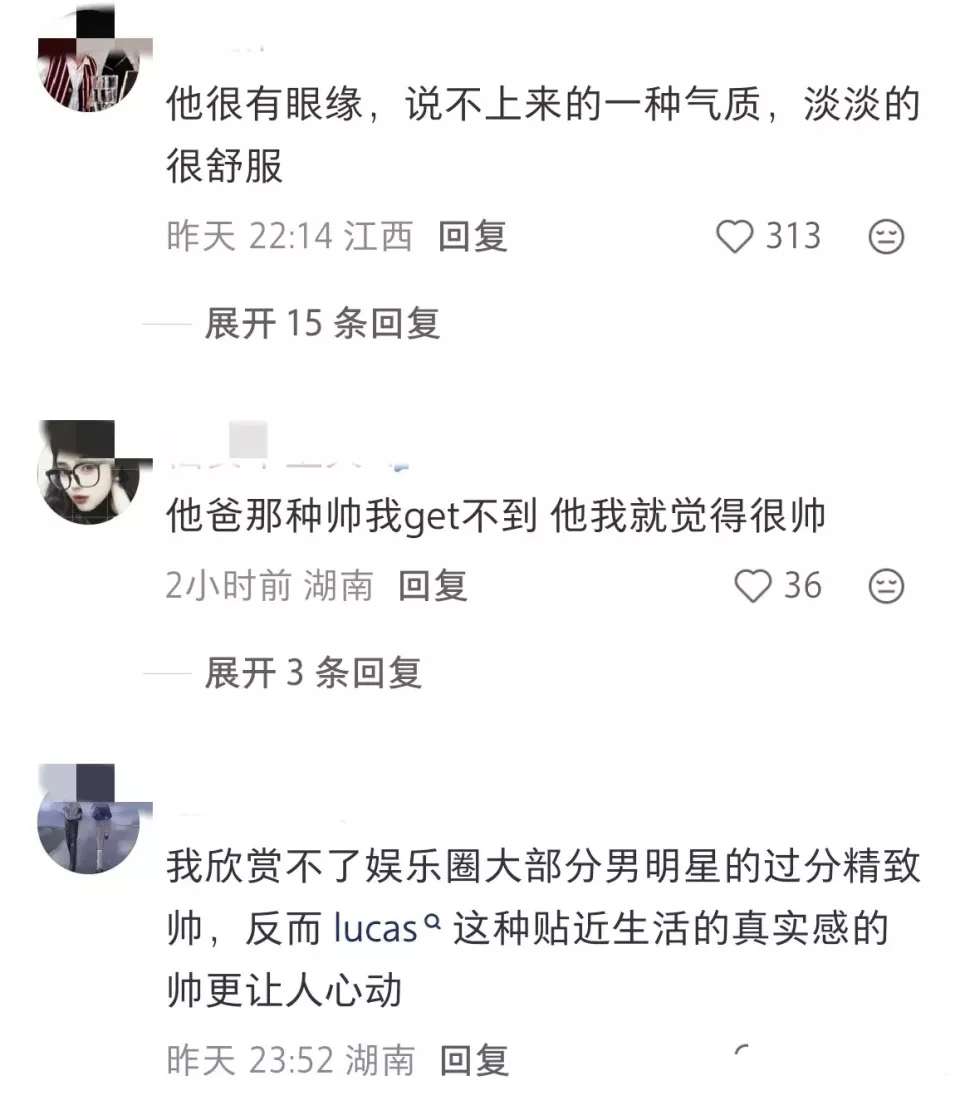 也有网友表示,谢振轩是那种很有气质、很有眼缘的帅气,和谢霆锋给人的感觉不一样。因为谢霆锋的帅不是所有人都能get,谢振轩的帅却更接地气,大众都能认可。