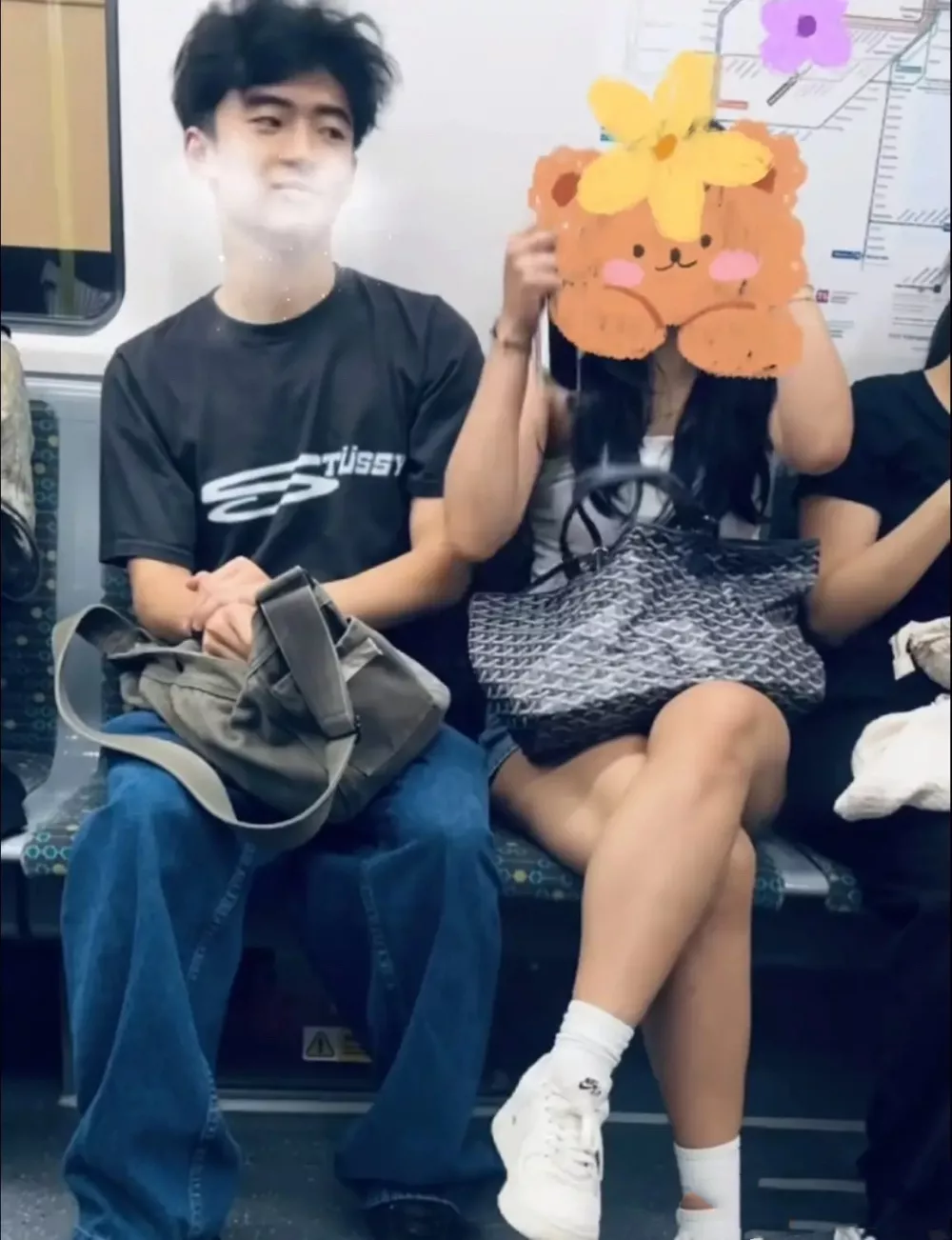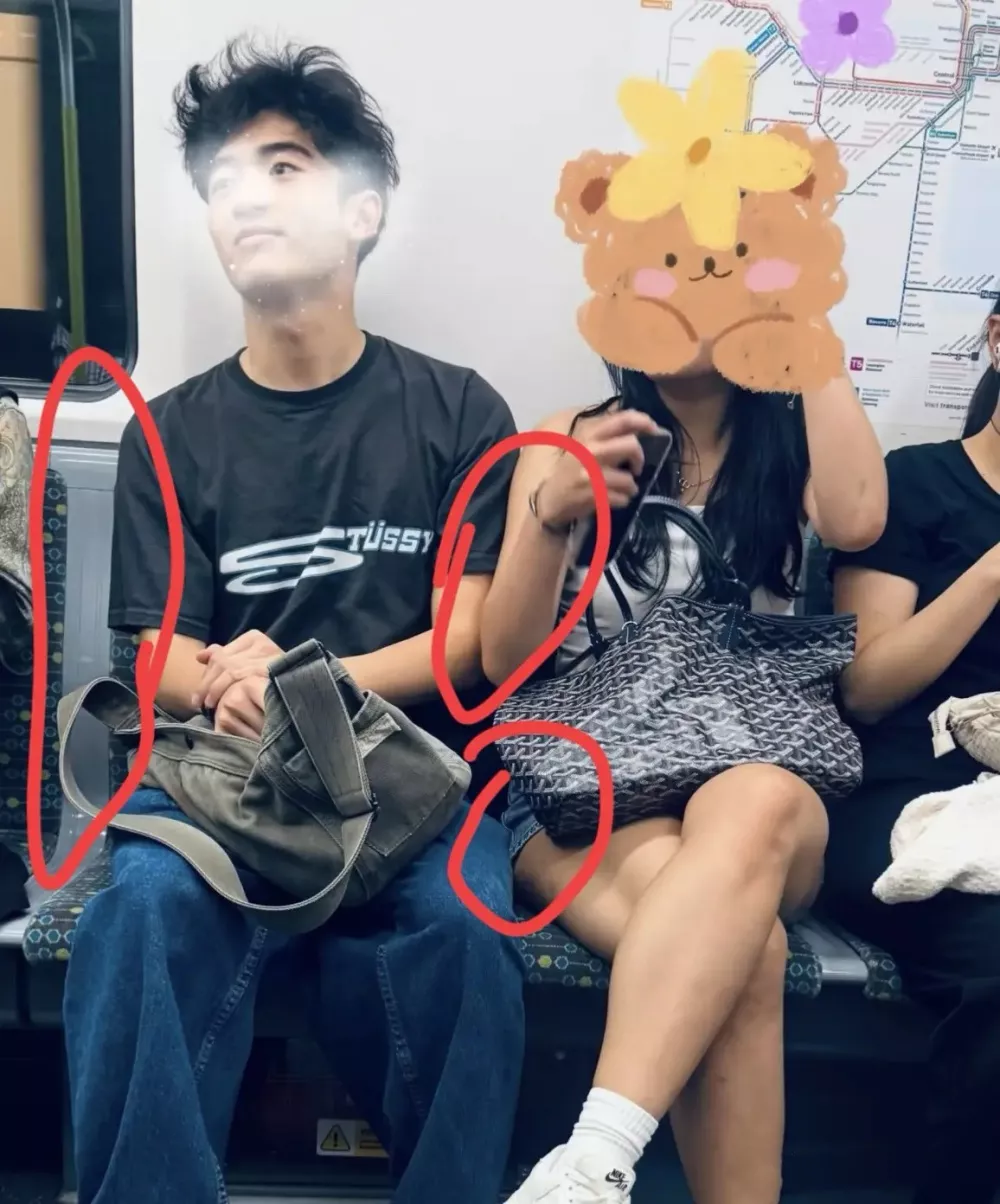 只不过两人的座位挨着很近,肢体接触也比较亲密。谢振轩的位置更偏向女同学,和另一侧的乘客保持了安全距离。