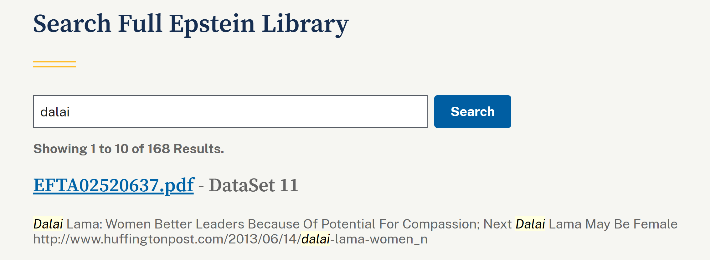 爱泼斯坦档案中,关键词“dalai”出现168次。 美国司法部网站截图