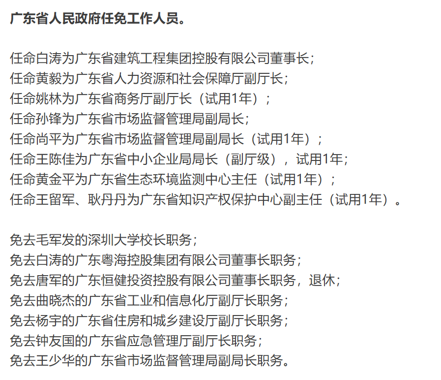 近日,广东省人民政府任免工作人员,免去毛军发的深圳大学校长职务。 毛军发,男,汉族,1965年8月出生于湖南邵阳,工学博士、教授。1998年9月加入中国共产党,1988年7月参加工作,中国科学院院士。 毛军发曾任上海交通大学电子信息与电气工程学院常务副院长、上海交通大学电子信息与电气工程学院院长等职,2018年6月起担任上海交通大学党委常委、副校长,2022年2月起担任深圳大学校长。