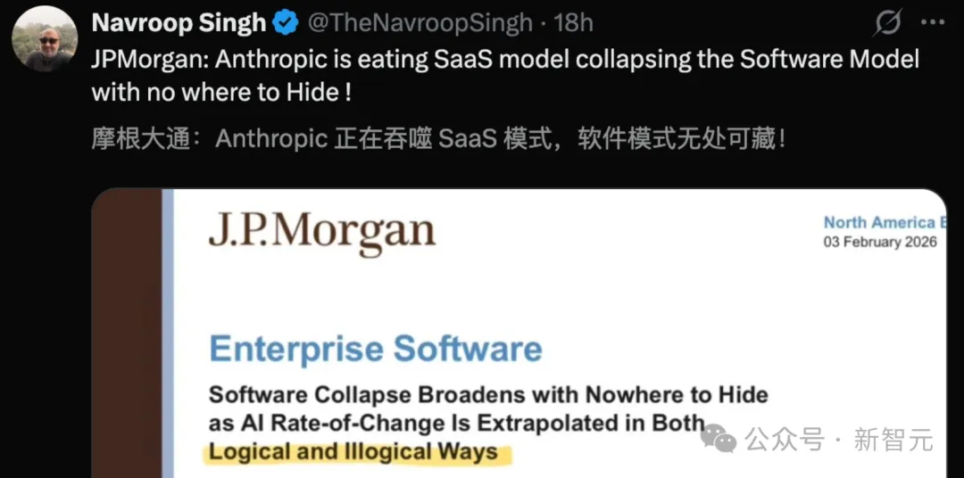 摩根大通发文称:Anthropic正在吞噬整个世界,让Saas商业模式崩塌,且无处可藏!