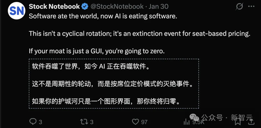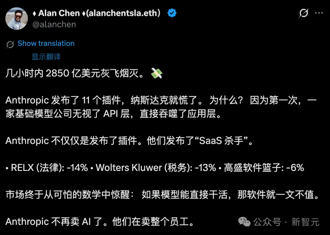 一位大佬锐评,「市场终于从冰冷数学逻辑中惊醒:如果模型能直接交付成果,传统的软件外壳将毫无价值」。