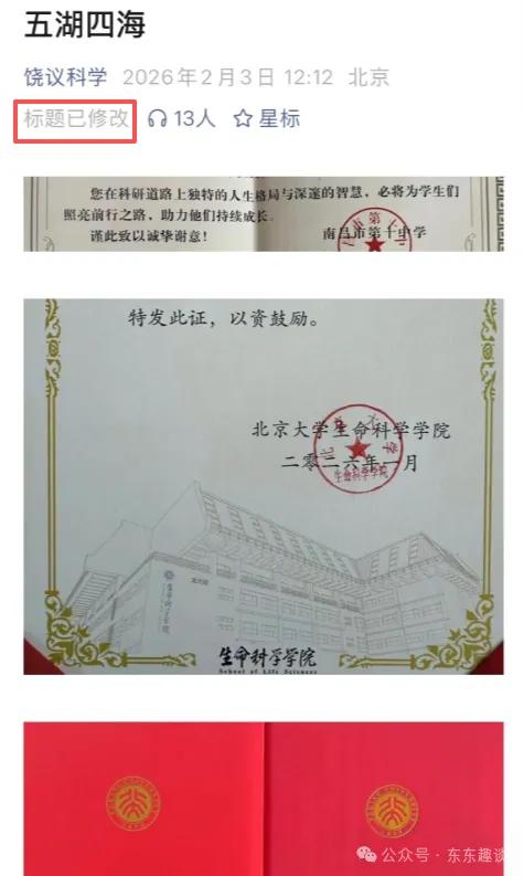不过随后饶毅修改了推文标题,去掉了后面两字“团结”。饶毅的这个修改是为什么呢?一下子引来网友的兴趣!