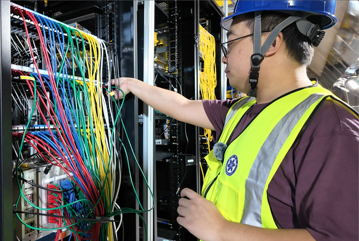 余泓钊在电子学间检查设备。倪思洁摄
