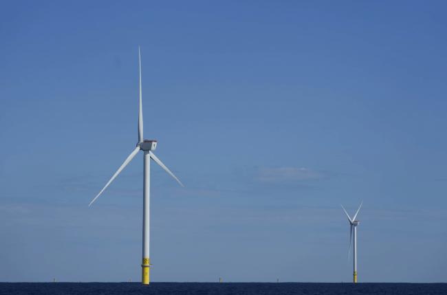 美国位于纽约长岛地区的 South Fork Wind 离岸风电机组。(美联社)