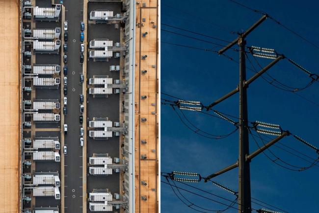 弗吉尼亚州马纳萨斯的亚马逊云科技资料中心(鸟瞰图)及附近的输电线。(图片来源:via华尔街日报)