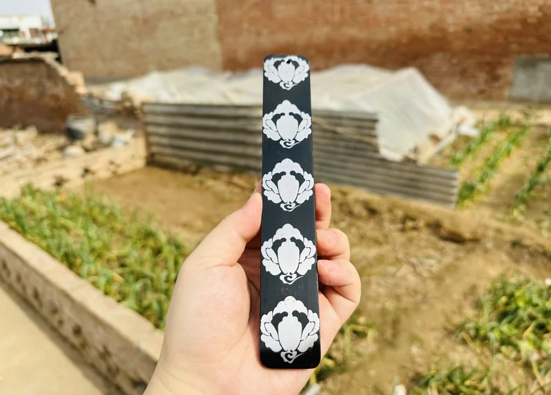 想在钢上“开”出牡丹花,实践起来异常困难。经过多番尝试,他终于研制出了牡丹镇纸、牡丹挂饰等文创产品。这些长约20厘米的钢条上,浮雕牡丹层层绽放,花瓣纹理纤毫毕现。