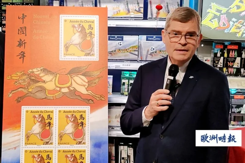 据介绍,今年是法国邮政发行中国农历生肖邮票22年。法国邮政于2005年发行了首轮第一套乙酉鸡年生肖邮票。2019年,法国邮政发行了又一轮首套己亥猪年生肖邮票。今年的丙午马年邮票是法国邮政第二轮生肖邮票的第八套,还是由旅法华人艺术家陈江洪设计。