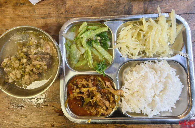 “孃孃,慢点走,我扶你坐里面!”“爷爷,今天有你爱吃的鱼香肉丝,煮得很耙活!”食堂义工们穿梭其间,一边亲切地打招呼,一边搀扶老人们就座。厨房内,炒肉丝的香气四溢,冬瓜骨头汤里的绿豆已熬得软烂,搭配清爽的炒土豆丝和青菜。
