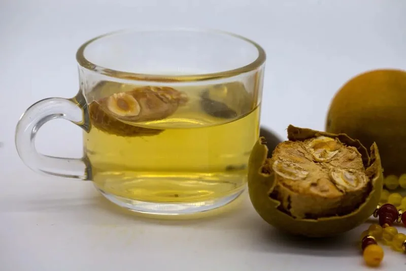 而两广地区在夏季则流行罗汉果茶,罗汉果内带有的罗汉果甜苷,是一种比蔗糖甜度还要高 300 倍的甜味素,但热量又相当低,因此常被作为代糖使用。泡于水中自带香甜,别有一番滋味。