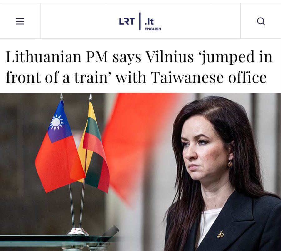 立陶宛总理鲁吉尼涅(IngaRuginiene)近日受访表示,让台湾在首都维尔纽斯设立“驻立陶宛台湾代表处”,像是“跳到火车前面,结果吃了大亏”,直言犯下巨大错误,与中国修复关系的过程艰难且漫长。中国官媒则表示,立陶宛必须拿出“切实纠正错误”,仅有口头表态远远不够。