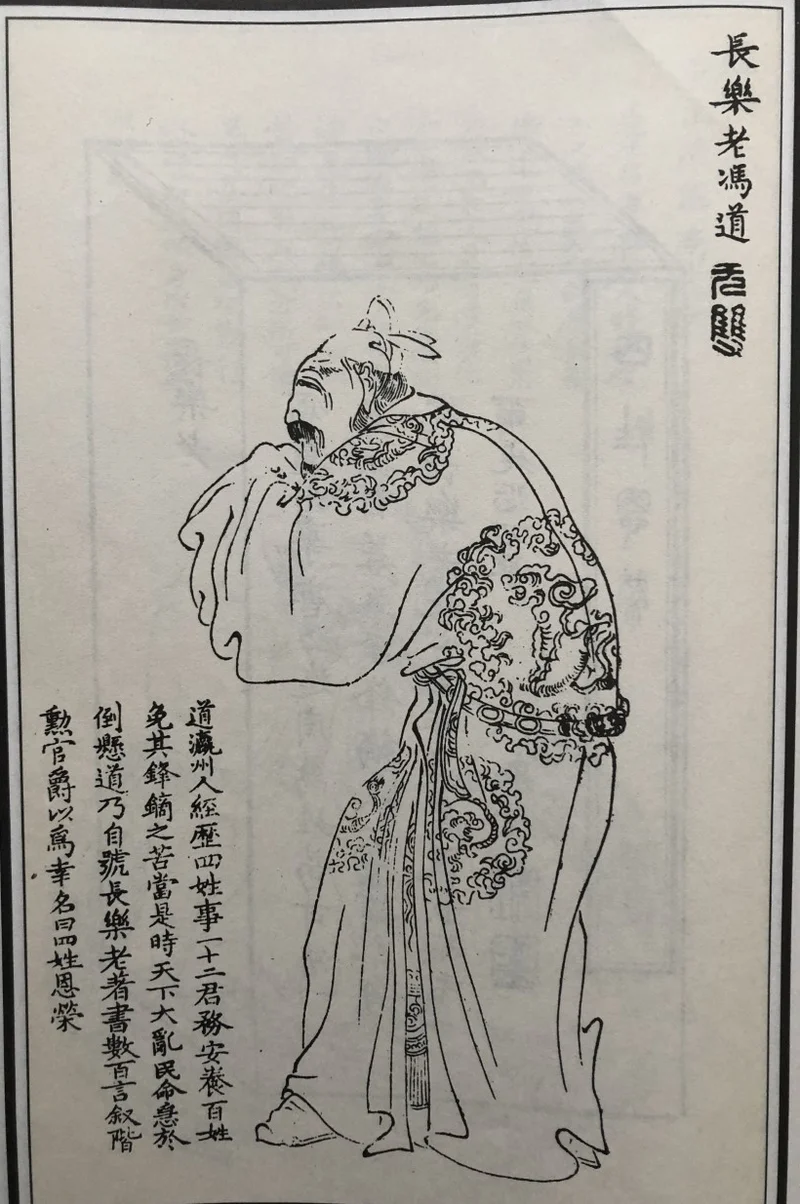 但是与冯道同时代的人,却与后人有完全不同的说法。正如《新五代史·冯道传》总结的“然当世之士无贤愚皆仰道为元老,而喜为之称誉”。朝野上下,众口一词,公认他清正廉洁,君臣称赞他“有大臣之体”,民间则甚至以孔夫子来比拟他,堪称圣贤之人。新、旧《五代史》都记录了这些赞扬之词,可知不虚。五代以后,在历史主流音之外,也还总有一些执拗的低音在回响。如宋代王安石,赞其舍己为人,宛如“诸佛菩萨之行”,反变法的富弼、苏辙都赞其为“大人”;明代李贽视其冯道是孟子“民贵君轻”理念的最佳实践者;清代的金古良也将冯道列入《无双谱》(从汉至宋,共40个天下无双的极品人物)之中,用的正是李贽的判词“安养百姓,免其锋镝之苦”。