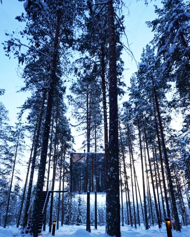 原来只是她自己想来体验一把住在树上,再泡几天冰浴的感觉,结果EMBA班上同学听了她计划,大腿一拍,票全投给了这,大家图的就是在瑞典斯德哥尔摩、基律纳这些常规路线外,去吕勒奥的雪原森林里找一份难得的清静。