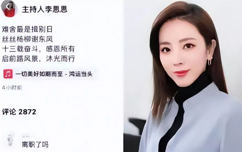 李思思在社交媒体上写下“难舍最是揖别日,丝丝杨柳谢东风。十三载奋斗,感恩所有。启前路风景,沐光而行。 ”正式告别工作了十三年的中央电视台。外界一片错愕,各种猜测纷至沓来,事业正盛,为何突然离开那个光鲜的舞台。