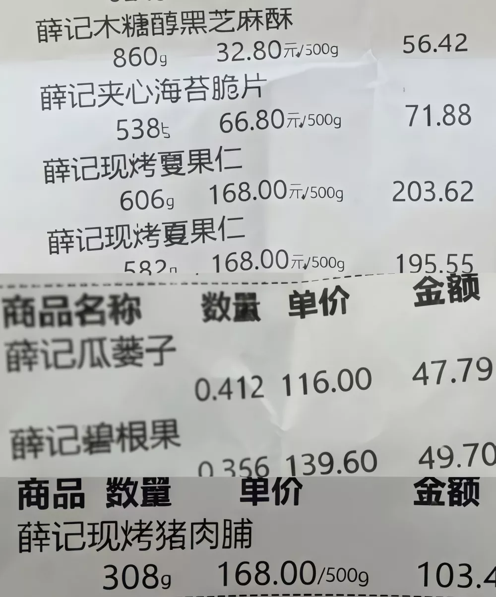 而在社交媒体上晒刚买的薛记,让网友猜这几片猪肉脯或是这三分之一口袋玉米球的“逆天”价格,也成了许多炒货购物者的“固定节目”——哀价格之高,盼有朝一日实现“薛记自由”。