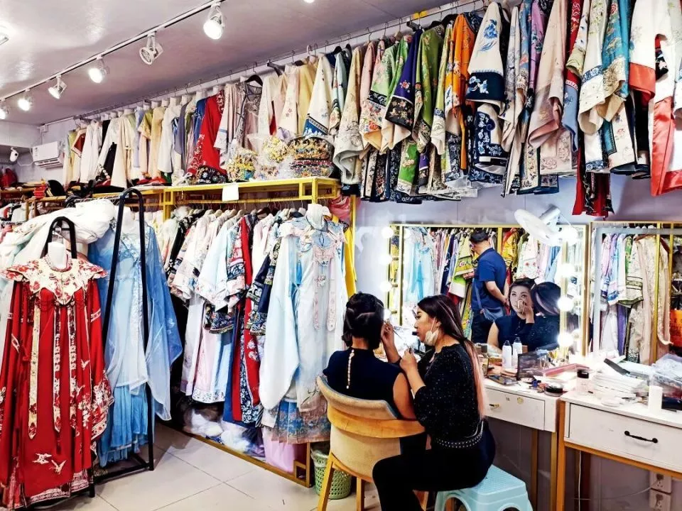 行业的爆发速度超乎所有人的想象。张静记得,在疫情后的旅游复苏初期,这栋大楼显得空荡而寂寥,“那时候只有三楼有部分拍摄机构”,零星几家店铺守着偌大的楼层。然而,短短两年光景,这里仿佛经历了一场商业上的“寒武纪”大爆发,从最初的几十家迅速裂变,如今已有上百家汉服拍摄商户挤满了大楼的各个角落。