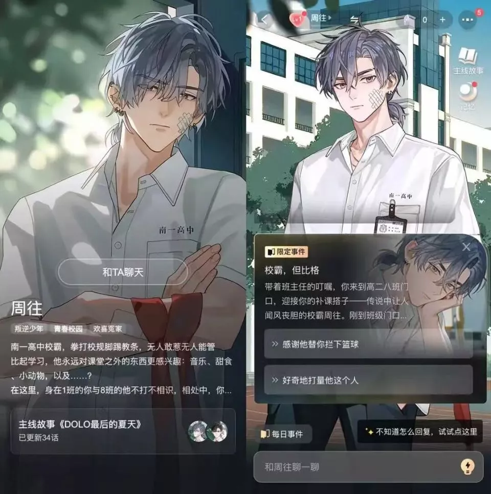 这种记忆机制让角色能够在后续互动中提及共同经历,从而形成关系连续性。与传统AI聊天相比,这种结构让互动从即时对话变成关系叙事。如果把传统漫画比作一段完整叙事,那么AI互动漫画更像是在叙事中打开一个入口——读者可以走进去。