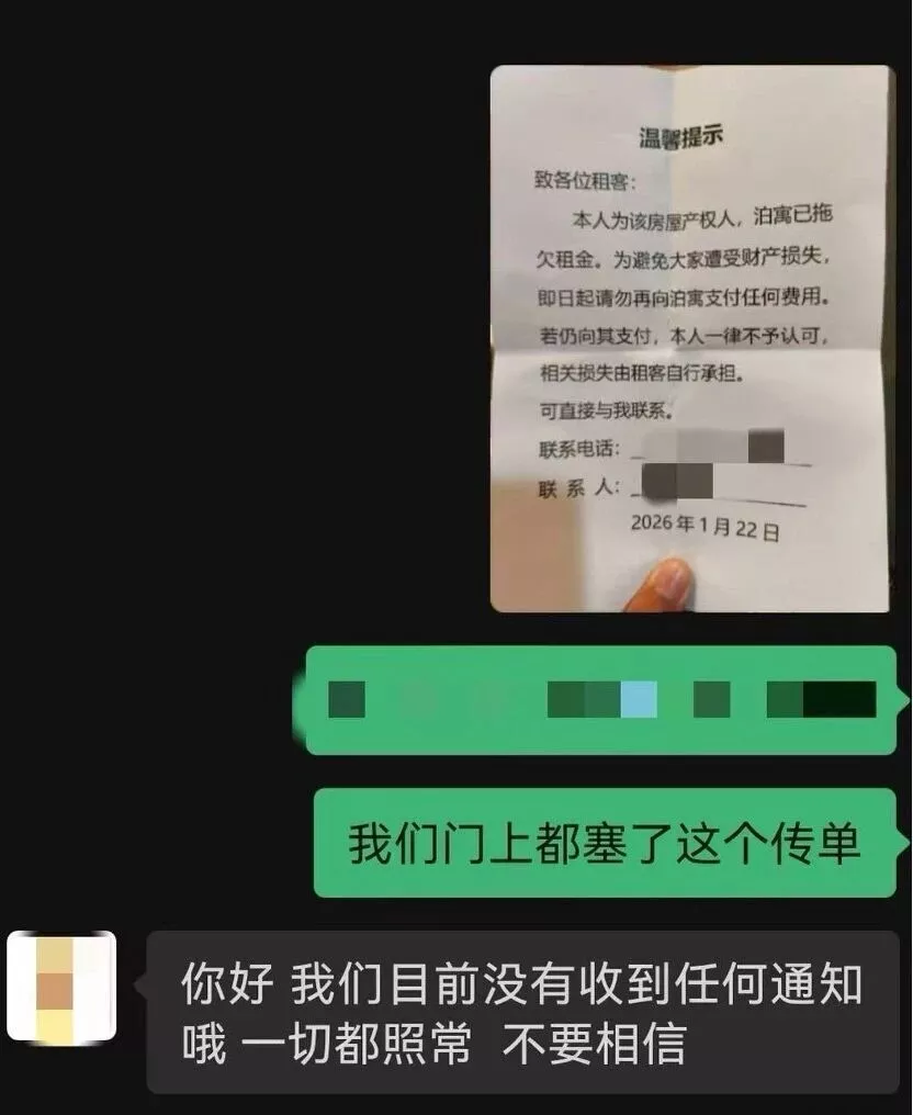 1月底,她和所在公寓楼的许多住户一样,在门缝里发现了房东塞的小纸条,对方提醒他们,泊寓方已拖欠租金,她才意识到住了好几年的房间也许将要面临传言中的“清退”了。