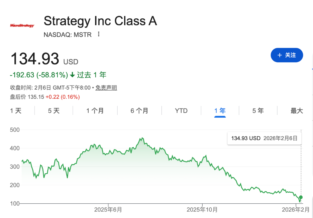 过去两年的流动性宽松曾支撑了包括加密货币在内的各类投机资产。典型案例如比特币持有公司Strategy近期披露单季度运营亏损高达170亿美元,其股价较特朗普连任后的高点已跌约80%,这家一度接近被纳入标普500指数的企业如今面临严峻考验。