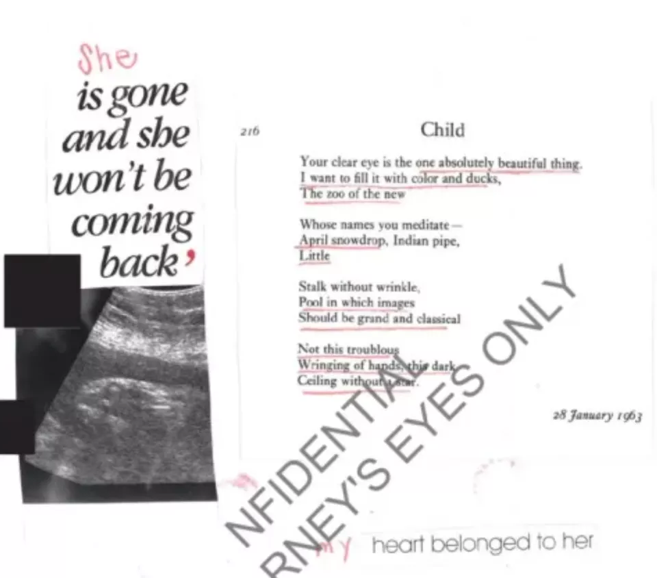 ▲这名受害者的日记中附有B超照片,写着“她走了也不会再回来了”,旁边还附上了美国女诗人西尔维娅·普拉斯创作于1963年的诗歌《孩子》