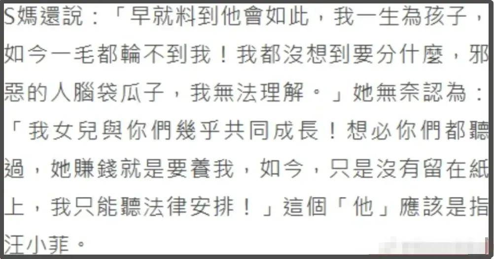 如果说台媒报道存在误会的可能,那S妈自己说的话,总要认的吧?