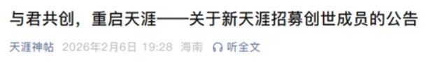 他们,将会成为成为新天涯的共建者与天涯社区重启者。