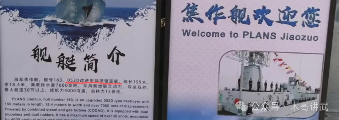 这是焦作舰迎接参观时做的简介牌,上面写的是“052D改进型导弹驱逐舰”,并没称作052DL。