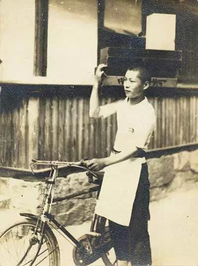▼昭和14年,荞麦面店“柿之木坂更科”的创始人宫川朝松先生将外卖送往都立大学教职员处。