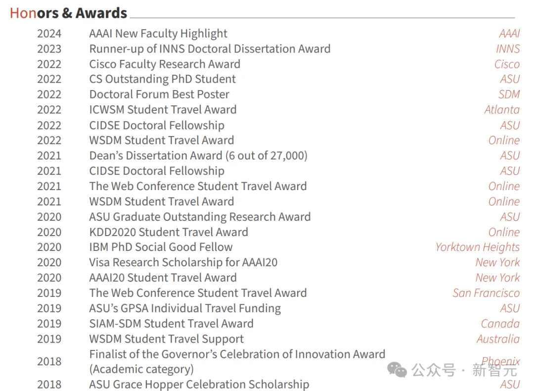 在 ASU 期间,她便崭露头角,获得了包括「CS 杰出博士生」在内的多项荣誉,并在 IBM 研究院和微软研究院积累了业界视野。