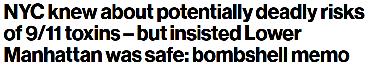 一份于周四公开的重磅备忘录显示,在2001年9月11日恐怖袭击发生数周后,当纽约市官员向市民宣称可以安全返回下曼哈顿时,市政府实际上已知晓相关毒素可能带来的风险。