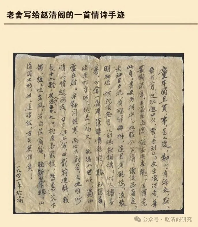 老舍给赵清阁写的一首无题情诗赵清阁研究