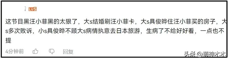 除此之外,节目里还重点提到了汪小菲和大S之间的纠纷,对汪小菲全是吐槽,现场嘉宾直接骂他是“窝囊废的终结者”,具俊晔则被赞为“情种”。