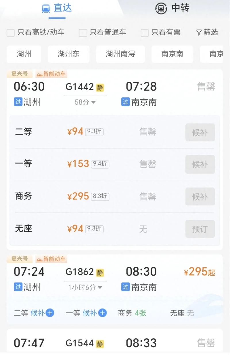 张女士的具体行程是湖州-南京南-恩施,连续数天抢票未果后,她开启了另一种购票方式。