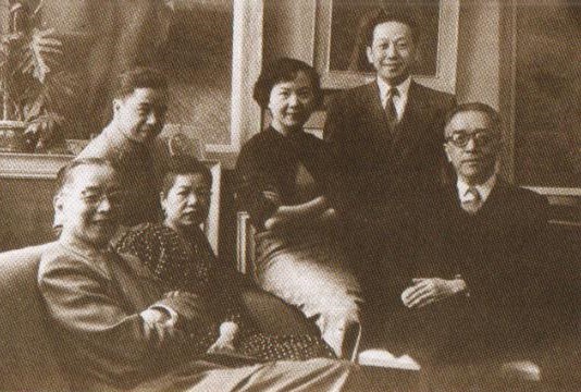 图:孙多慈(中)在1951年游历美国时于纽约与胡适(右一)、汪亚尘(左一)、王少陵(后排左一)等拍摄的合照。