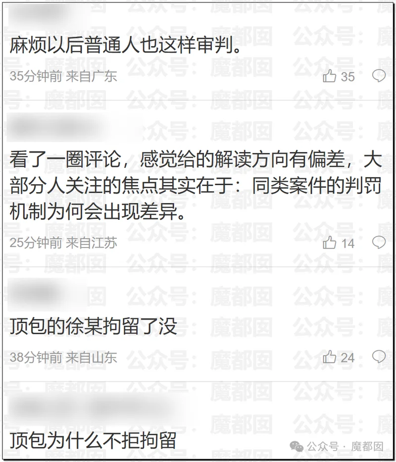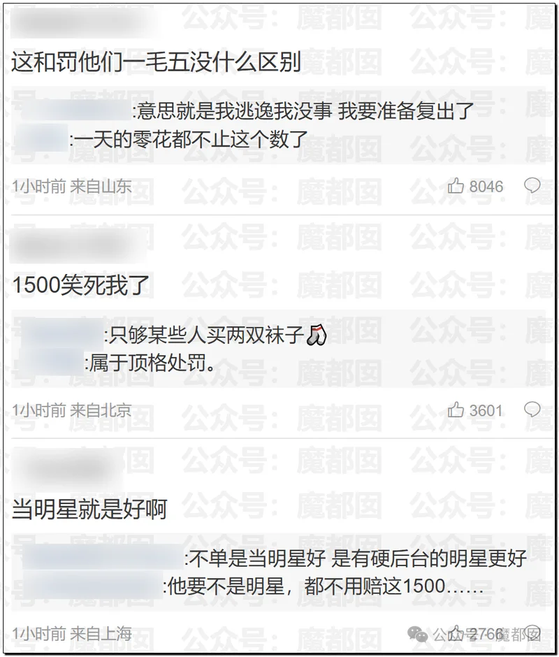 其实本质上不是这个事情处罚的如何如何,我们说到底,这事情处罚的很难说有毛病,问题在于一旦将此类案件做横向比较,大家就会惊讶的发现其他普通人发生类似的事情并不是这么处罚的,现在网友最主要的争议点其实在于此:
