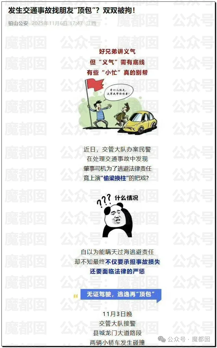 当然,如果仅仅是处罚明星,给予若干罚款了事,那么这场“顶包风波”,尚未抵达正义的终点。众所周知,金晨交通肇事逃逸,本人固然有受伤需从速求医的客观原因,而停留在现场的助理,则有“谎称自己系驾驶员”的过错行为,误导了警方依法处理。如今,金晨已经为自己的错误付出了被处罚的代价,那么“顶包”的助理,也应当被纳入依法处罚的链条。