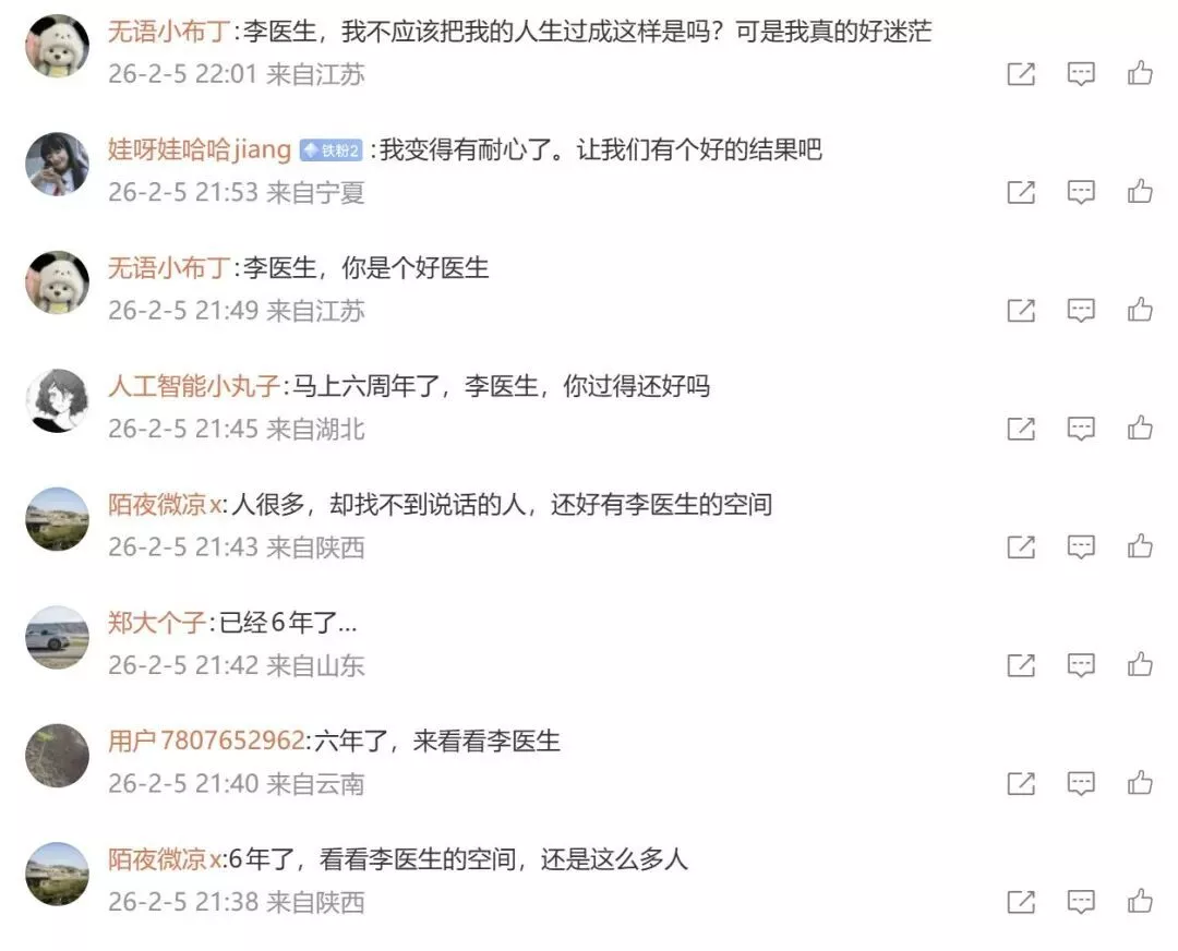 2026年2月5号李文亮的微博留言区