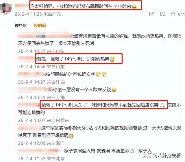 尤其是当初S妈和小S的热舞视频流传得可是很广,病人已经生病了,他们却在深夜跳舞,没有一个人把她的病情当回事,这难道还不够说明问题吗?