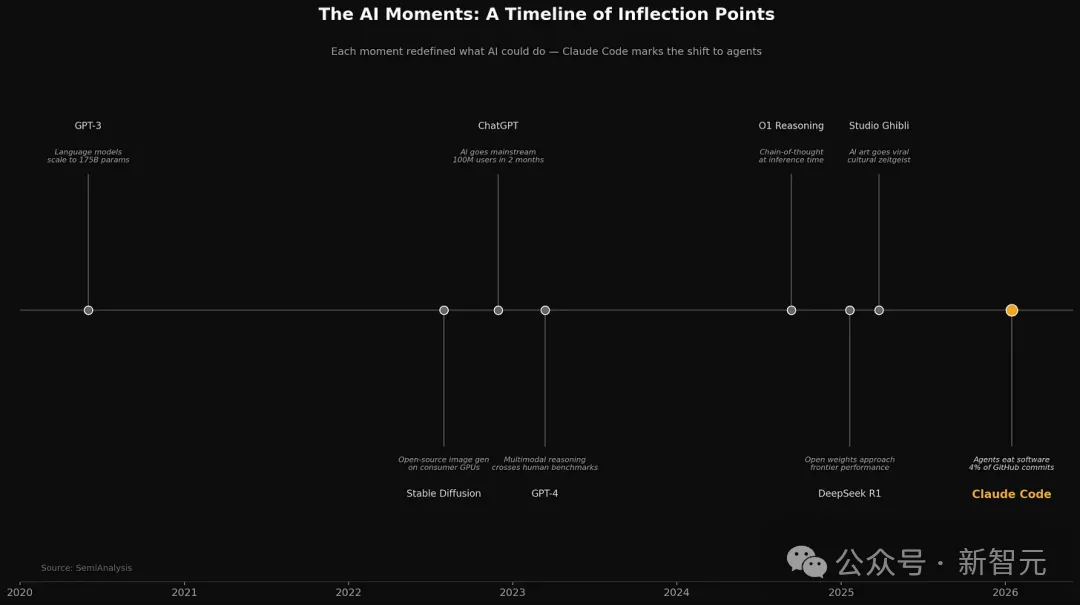 目前,GitHub上4%的公开提交(commits)都是由Claude Code生成的,到了2026年底这个数字将达到20%以上。