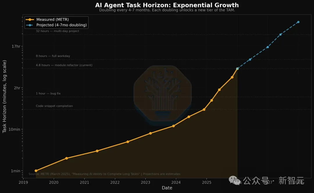 真正加速这一进程的核心变量,并非是AI变得有多聪明,而是其「长跑」能力的指数级爆发。