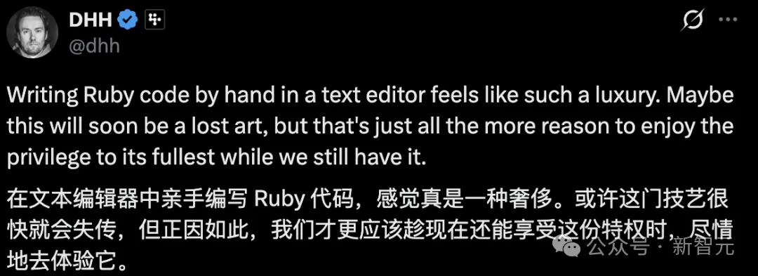 Ruby on Rails的创造者DHH感叹:如今在编辑器里手写代码已变成一种「奢侈的复古行为」。