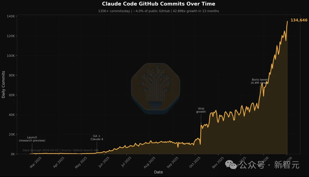 截至目前,Claude Code一天在GitHub提交代码的次数已达到134646次,增长了42896%!