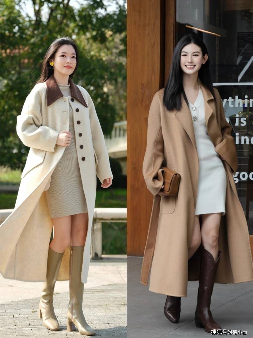 这里给大家避个坑,千万别让裙摆完全遮住靴筒,不然就成了普通的“长裙配靴”,失去了“裙中靴”的层次感,也别让靴筒外露超过10厘米,不然会显得比例差。小个子美眉优先选裙摆过膝10厘米、靴筒外露5厘米的组合,高个子可以尝试裙摆过膝15厘米、靴筒外露8厘米,气场直接拉满!
