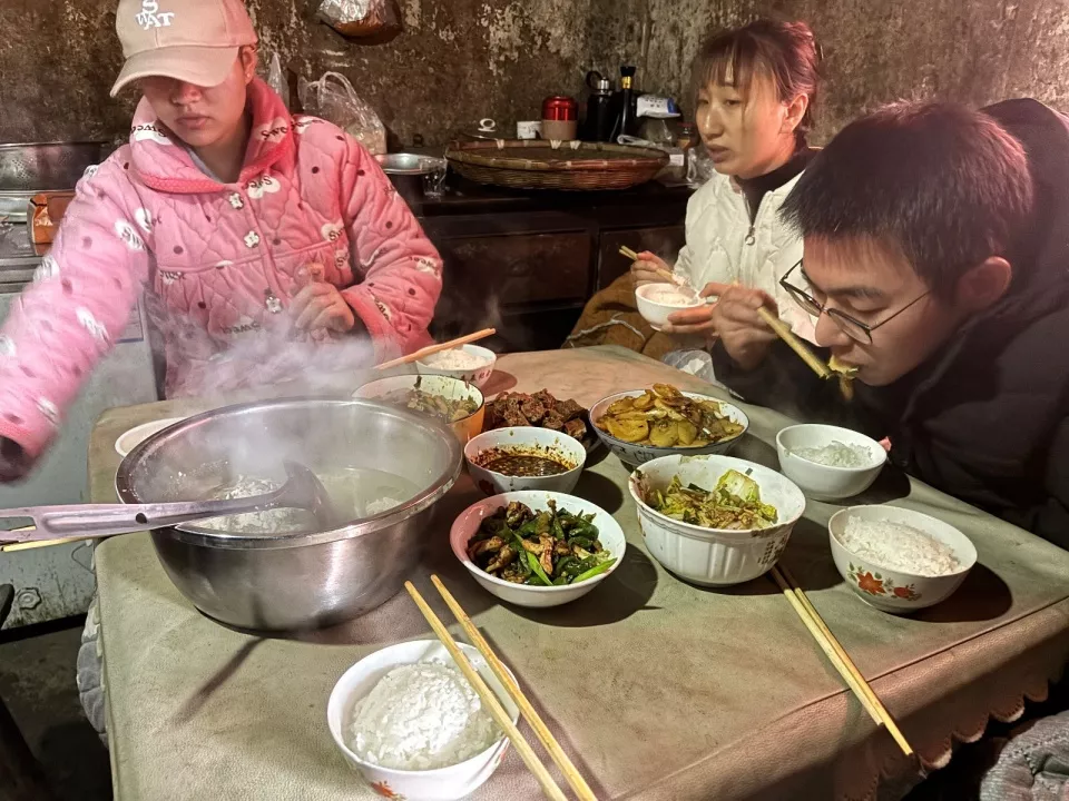 胡龙跟家人一起吃饭。图/九派新闻 徐玉婷